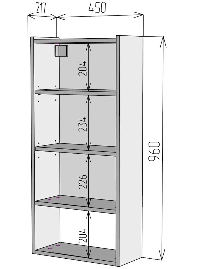 - Легкий монтаж на стену обеспечит удобное размещение шкафа на оптимальной высоте, доступной каждому члену семьи.