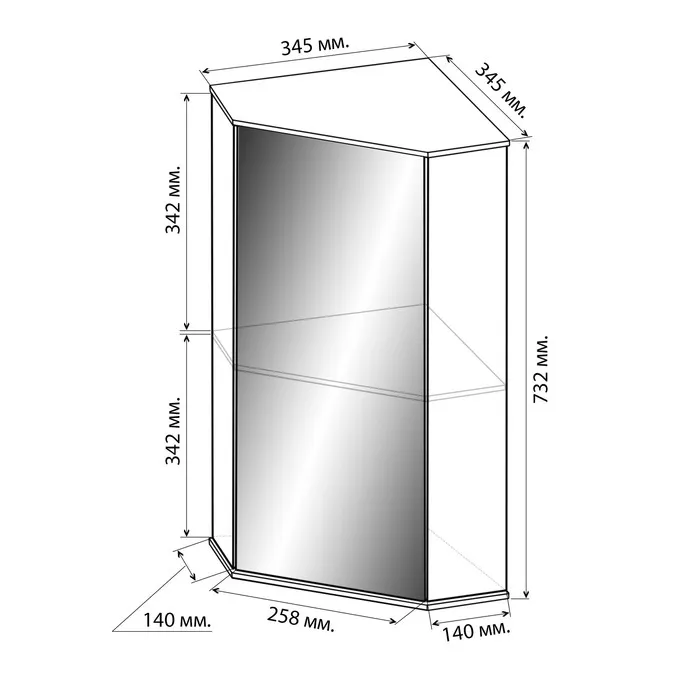 Шкаф навесной для ванной комнаты угловой "ПШ" с зеркалом, 48 х 34 х 73 см — Характеристики