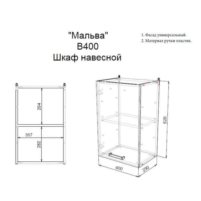 Шкаф навесной В400 Мальва, 400х290х626, Венге/Лоредо — Характеристики