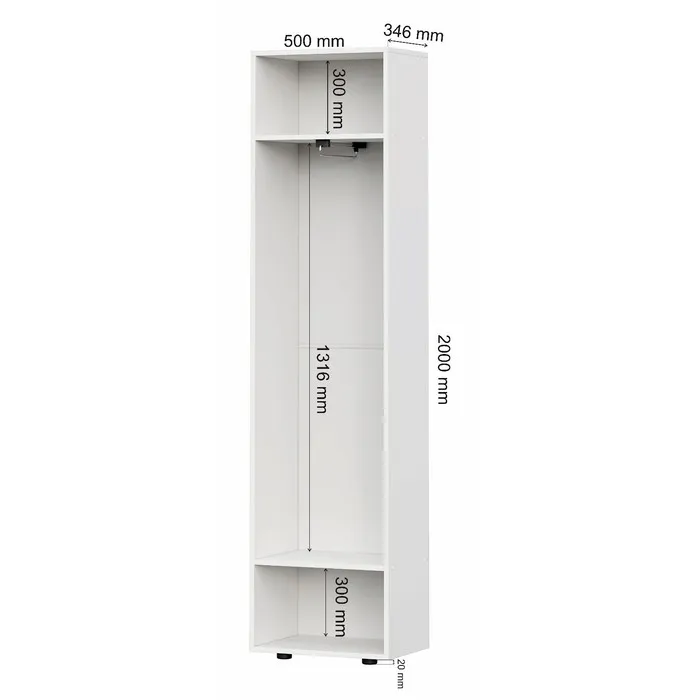 Шкаф пенал для одежды «Одри», со штангой, напольный, 501×346×2000 мм, цвет белый — Характеристики