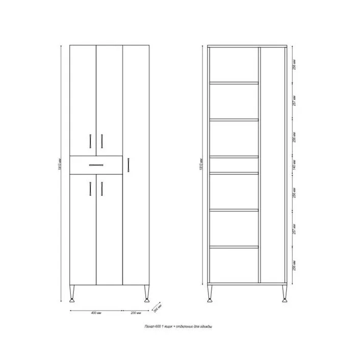 Шкаф - пенал для ванной комнаты 600 с отделением для одежды, 191×60×26,6 см — Характеристики