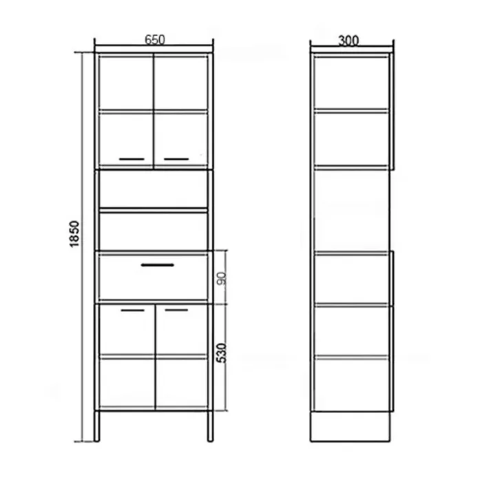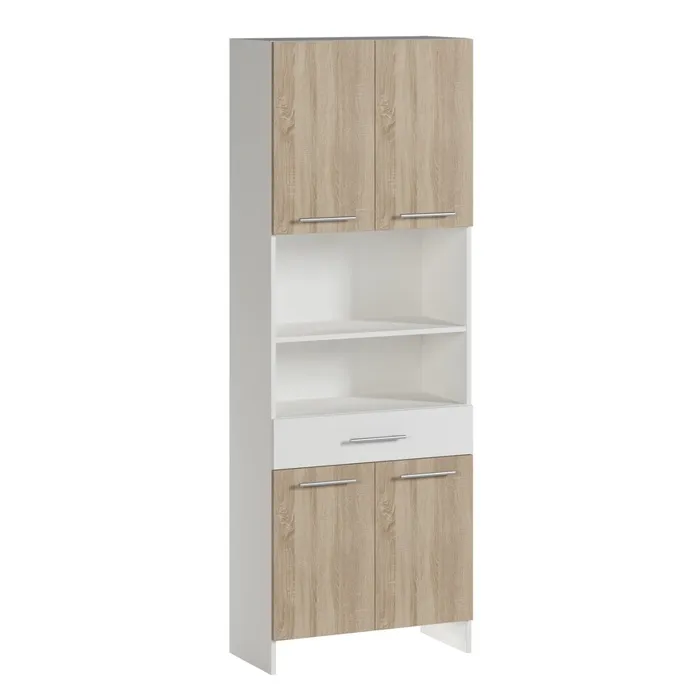 Шкаф - пенал для ванной комнаты, Белый/Дуб сонома, 65×30×185 см — Характеристики