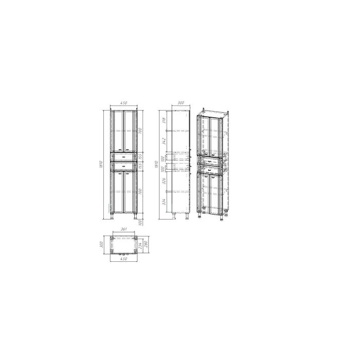 Шкаф - пенал для ванной комнаты на ножках для ванной комнаты "Тура 45", 45×30×181 см — Характеристики