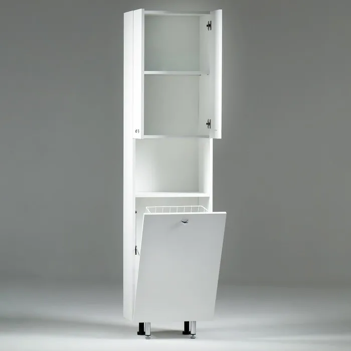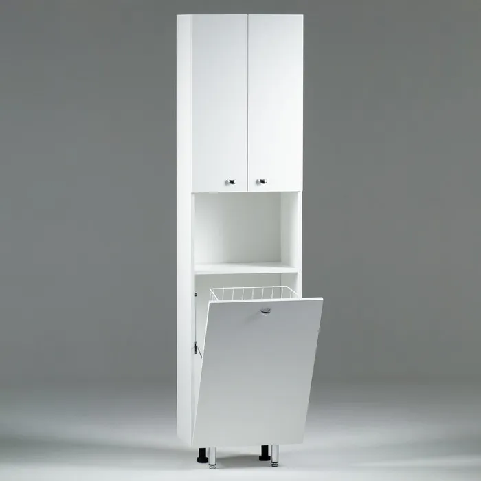 Шкаф пенал на ножках для ванной комнаты «Вега 4503» с корзиной, белый 45×30×181 см — Характеристики