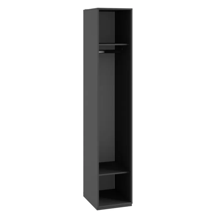 Пенал Ника, 450х500х2100 - вместителен и удобен. Выполнен из экологически чистых и качественных материалов. В пенале Ника находится одна штанга для плечиков, и две полки для организации одежды, белья и других предметов. Стильный акцент в виде фрезеровки на дверце пенала делает его изысканным, лаконичным и подходящим к любому виду интерьера.