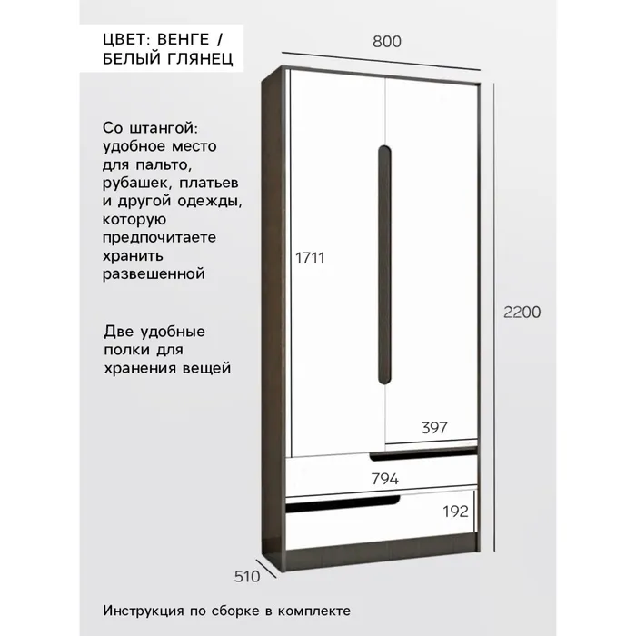 - Полки: вместительные, равномерно распределены по высоте шкафа