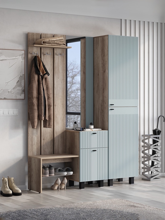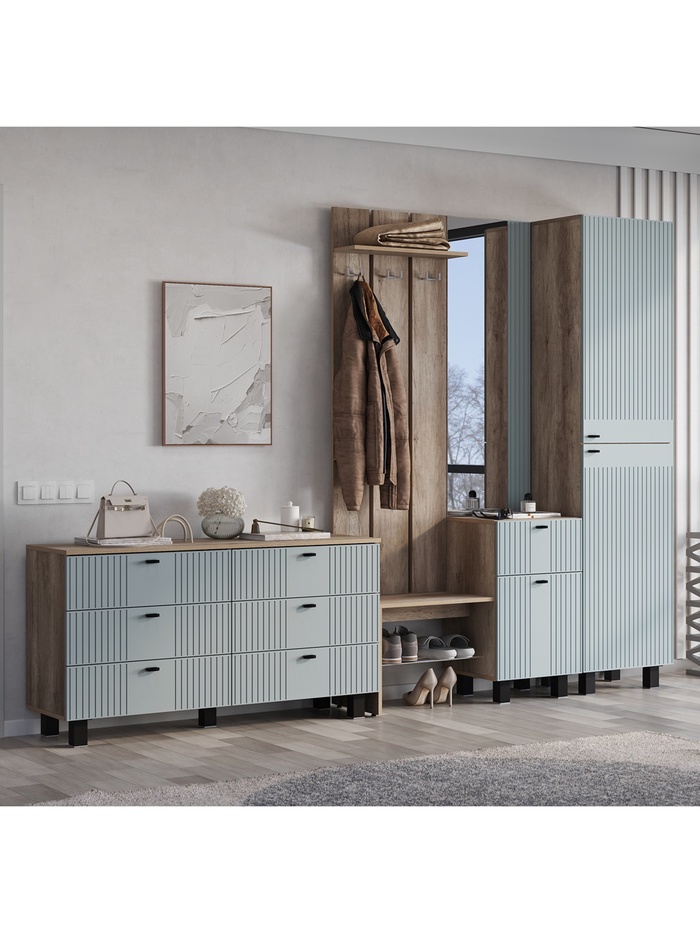 Компактный и функциональный шкаф-пенал из коллекции «Олива» — практичное решение для хранения вещей в гостиной, кухне или прихожей. Современный дизайн, прямые фасады с фрезеровкой и универсальная сборка делают модель удобной и универсальной для разных интерьеров.