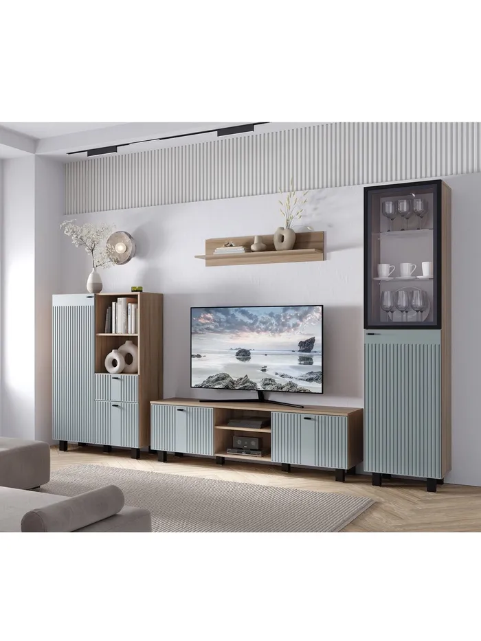 - Полки: закрытые и стеклянные для удобного хранения и эффектной демонстрации предметов