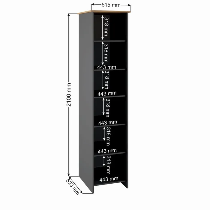 Шкаф пенал с полками «Теодора», 515×523×2100 мм, графит/крафт золотой — Характеристики