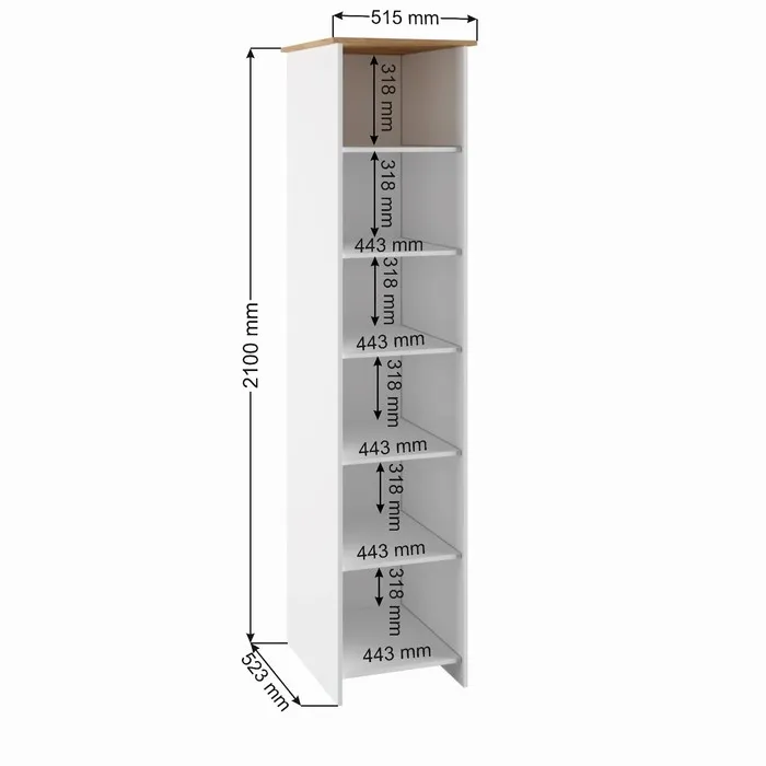 Шкаф пенал с полками «Теодора», 515×523×2100 мм, цвет белый/крафт золотой — Характеристики