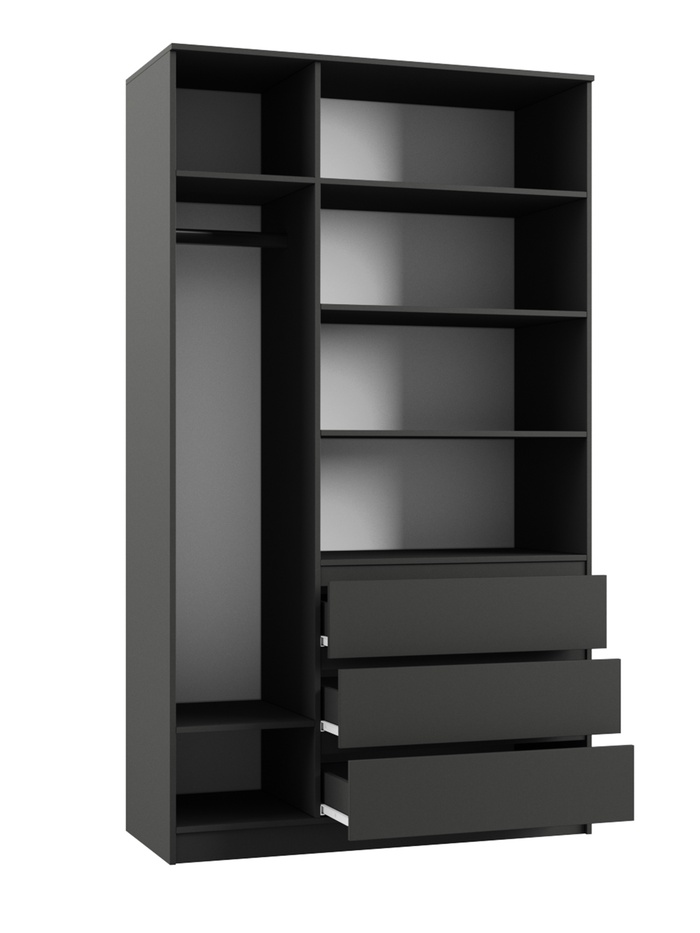 - Комбинированное наполнение: полки и штанга подходят для хранения сложенной одежды и вещей на вешалках.