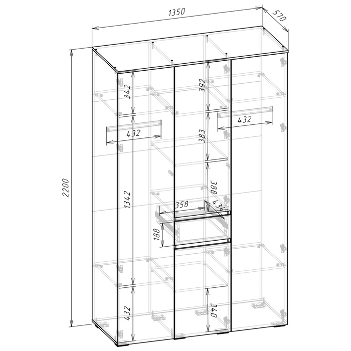 Шкаф прямой трёхстворчатый для одежды «Лора», 1 ящик, 1350×570×2200 мм, цвет белый — Характеристики