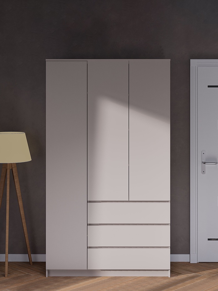 - Внешний вид: актуальный оттенок прекрасно сочетается с большинством стилей интерьера, делая шкаф незаметным элементом обстановки.