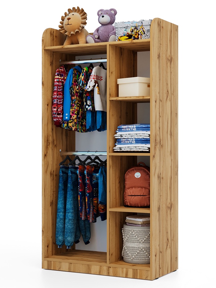 Разработан с учётом потребностей детской комнаты. Компактные габариты и продуманная внутренняя организация позволяют ребёнку самостоятельно пользоваться вещами и поддерживать порядок.