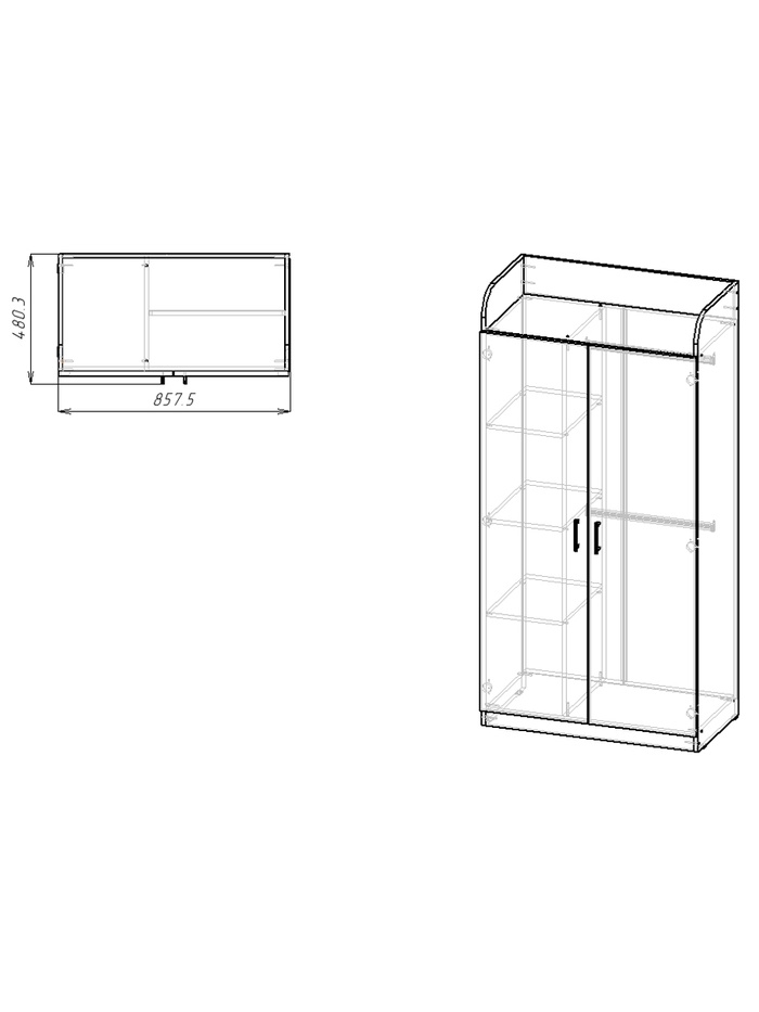 - Функциональное наполнение: две штанги для одежды, три съёмные полки и защитный борт с трёх сторон.