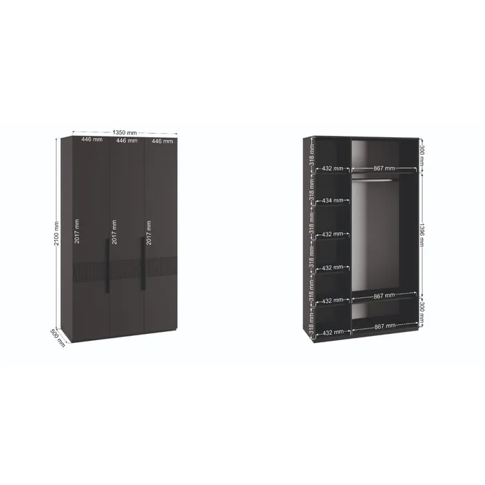 Шкаф трехстворчатый «Ника», 1350×500×2100 мм, МДФ, цвет графит/дуб/эйфория — Характеристики