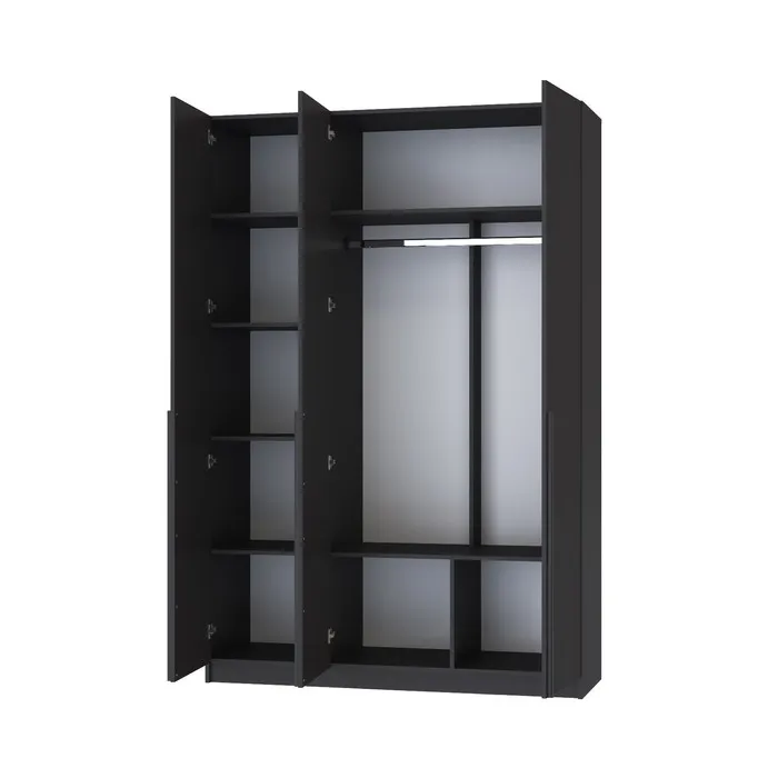 Шкаф 3х ств с доводчиками Стронг, 1500х536х2200 – это функциональное, стильное и удобное решение для хранения вашей одежды и любимых вещей. Благодаря своему дизайну, этот шкаф отлично впишется в любой стиль интерьера: лофт, минимализм, современный или даже скандинавский. Внутри шкафа находится прочная штанга, большая полка сверху, четыре удобные полки сбоку и две удобные ниши для хранения снизу. Благодаря доводчикам в комплекте, распашные двери не будут громко хлопать, а значит дольше прослужат механизмы — петли, замок. Плавное закрывание дверей обеспечит вам тишину и порядок в вашем доме.