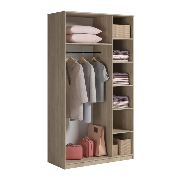 Шкаф 3 двери с зеркалом Светлана – отличное решение для хранения вашего гардероба. Пять полок вместят много разных вещей и предметов. Штанга выдержит большое количество платьев и костюмов. На широкую верхнюю полку поместятся сумки, коробки или даже подушки, как показано на втором фото. Дополнительным преимуществом трехдверного шкафа Светлана является то, что он оснащен удобным зеркалом.