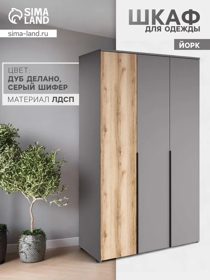 Шкаф трёхстворчатый для одежды «Йорк», 1170×577×2020 мм, цвет серый шифер/дуб делано — Характеристики