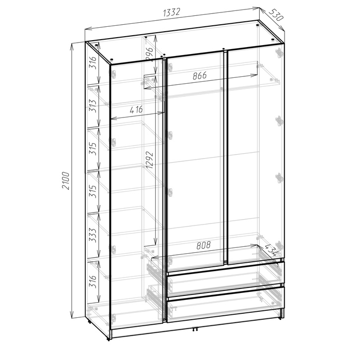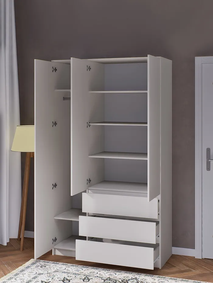 - Комфорт в использовании: продуманная система открывания дверей и размещения полок делает использование шкафа удобным и быстрым.
