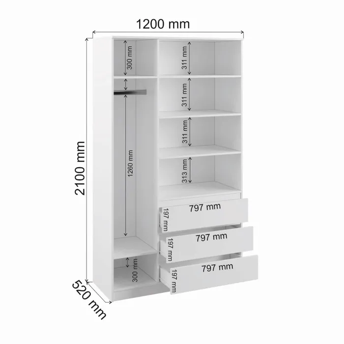 Шкаф трёхстворчатый «Мадера», распашной, 1200×520×2100 мм, цвет белый — Характеристики