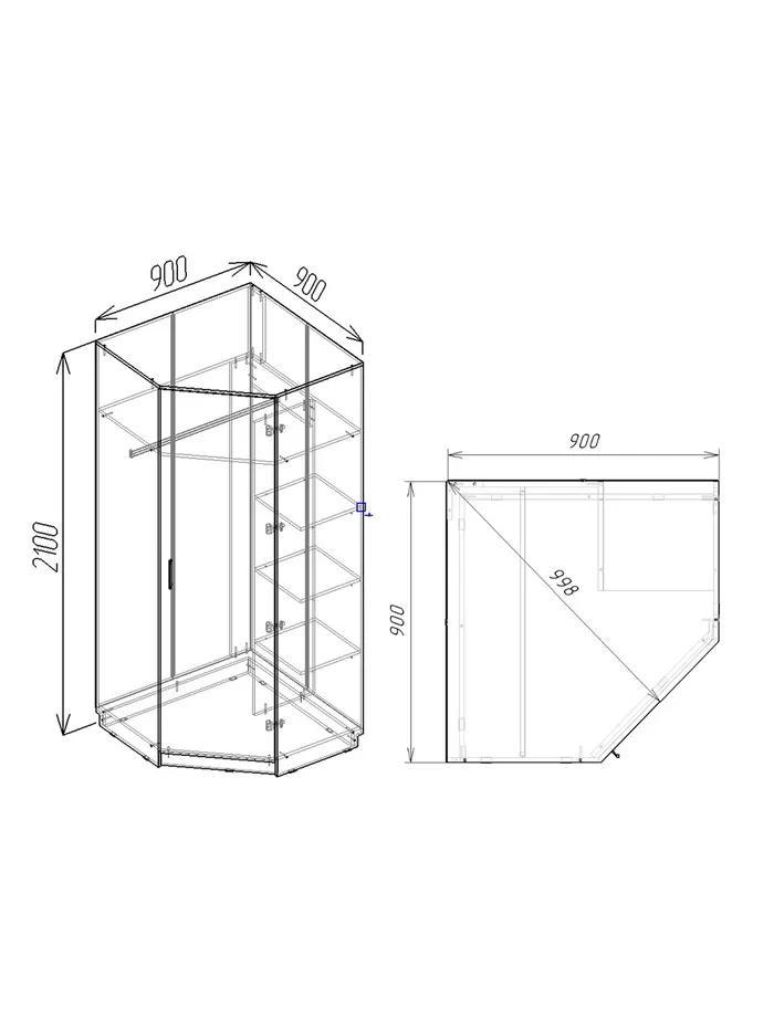 Шкаф угловой для одежды «Клик Мебель», 900×900×2100 мм, цвет белый — Характеристики