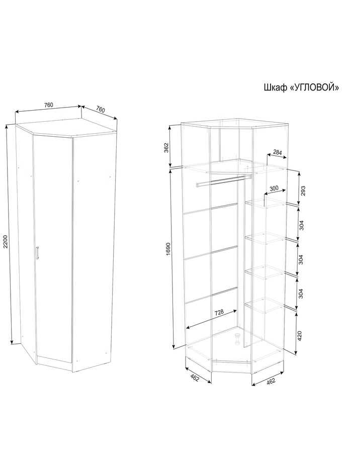 Шкаф угловой «ЭКО», 760(760)×2200×481 мм, цвет графит — Характеристики