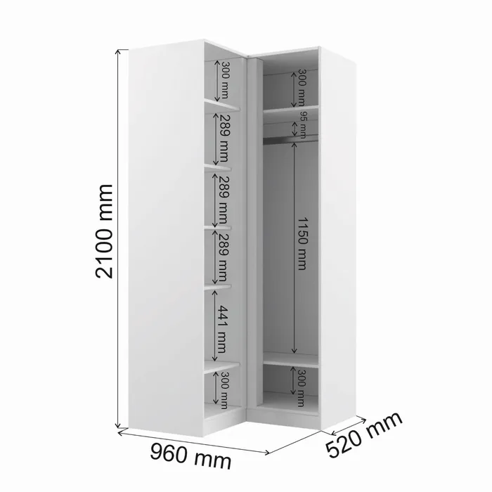 Шкаф угловой «Мадера», 960(960)×520×2100 мм, цвет белый — Характеристики