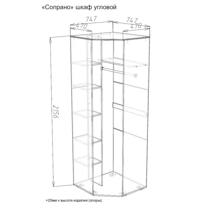 Шкаф угловой «Сопрано», 751×751×2176 мм, цвет анкор светлый — Характеристики