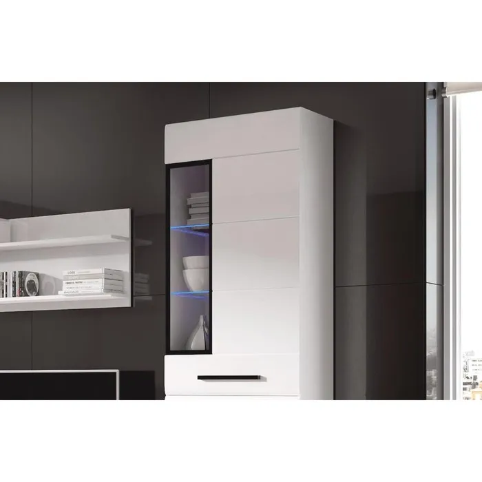 Шкаф-витрина "Кёльн", 595х335х1960, Белый Аляска/Белый глянец - стильный и удобный. Корпус из ЛДСП экологического класса Е1 16 мм с глянцевой поверхностью. Петли дверей с амортизаторами. Створки шкафа закрываются плавно и бесшумно. Во внутреннем пространстве шкафа расположены две стеклянные съемные полки в верхнем отделении и две стационарные несъемные полки в нижнем отделении, обеспечивающие дополнительную жесткость шкафа. Возможно использование подсветки, которая подчеркнет красоту изделия (приобретается отдельно). Дверцы монтируется как на правую, так и на левую стороны.