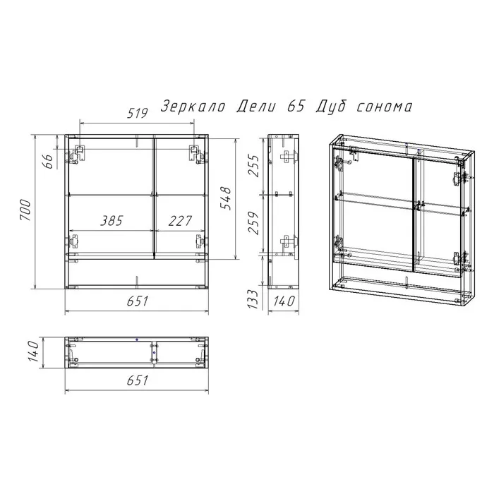 Шкаф-зеркало Spectrum Дели 65, дуб сонома — Характеристики