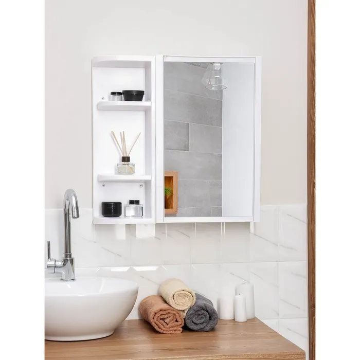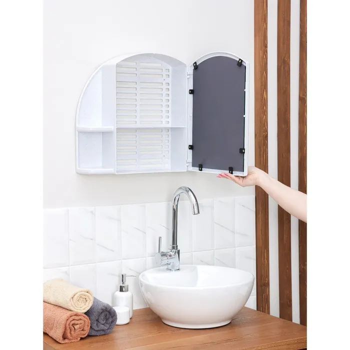 Особенностью этого шкафчика является наличие зеркала, которое не только выполняет свою основную функцию, но и визуально расширяет пространство ванной комнаты. Зеркало выполнено из прочного стекла, устойчивого к влаге и царапинам. Оно обеспечивает чёткое отражение и придаёт изделию изысканный вид.