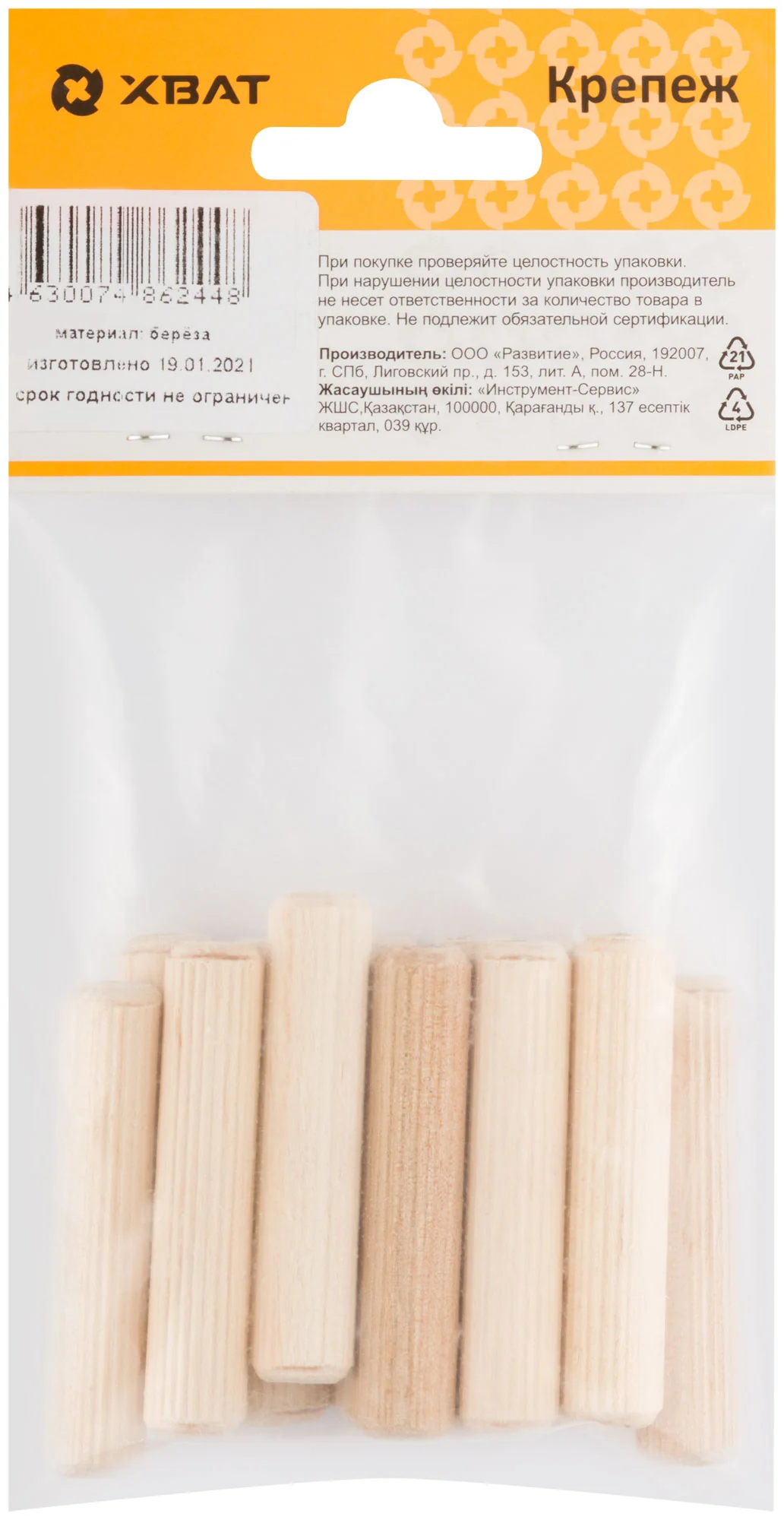 Преимущество березового шканта в его натуральном материале, который не только экологичен, но и устойчив к деформациям. Фасовка из 12 штук позволяет использовать его как для мелких, так и для средних проектов.