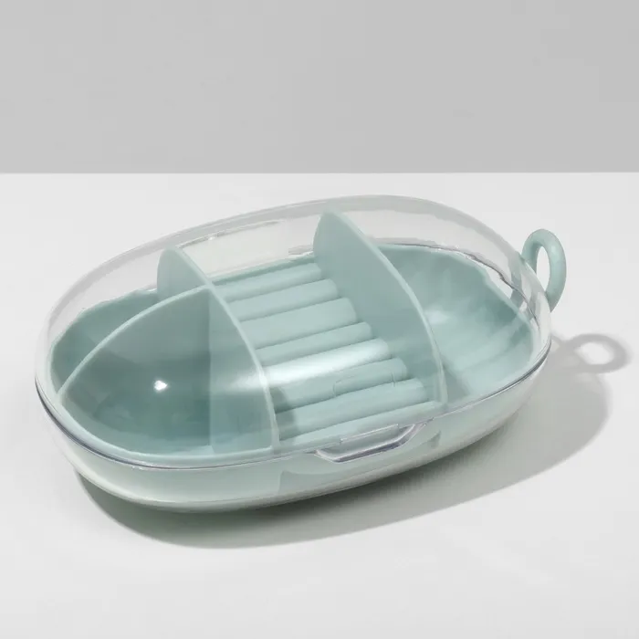 Шкатулка 3 ячейки, 7 полос, 15×8×5 см, голубая — Характеристики