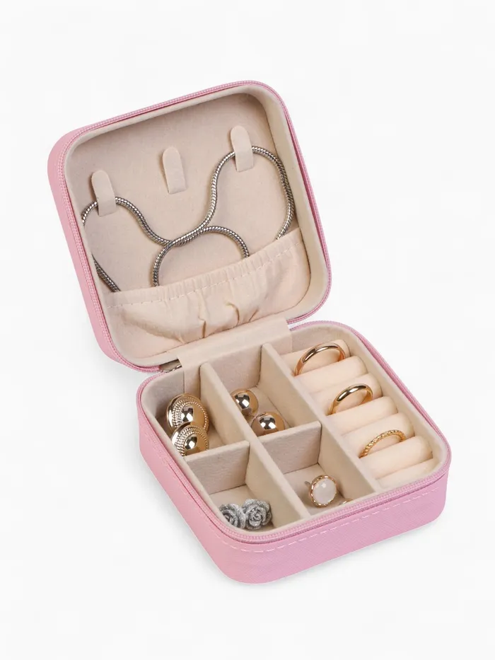 Эта компактная шкатулка в нежно-розовом оттенке создана для бережного хранения ваших украшений и мелких аксессуаров. Квадратная форма размером 9,5×9,5×4,5 см оптимально сочетает вместительность и удобство, позволяя аккуратно разместить кольца, серьги, цепочки и кулоны.