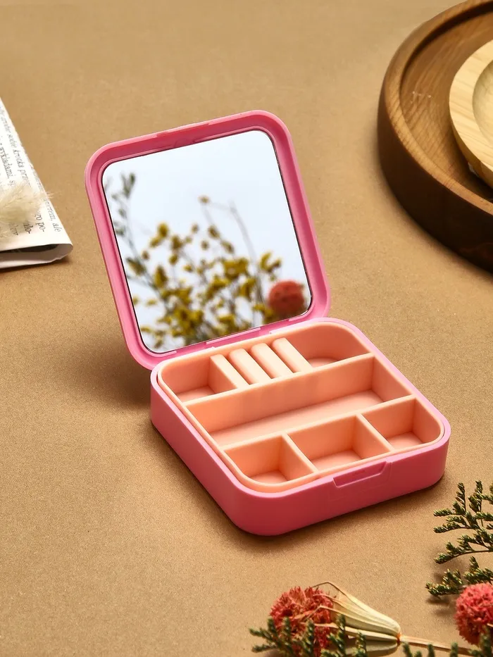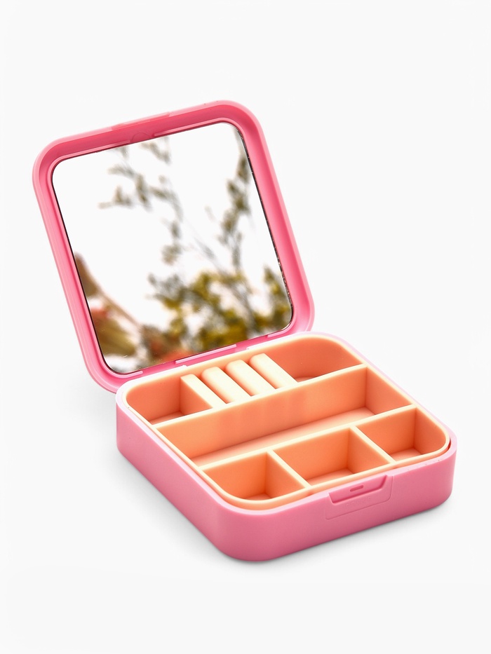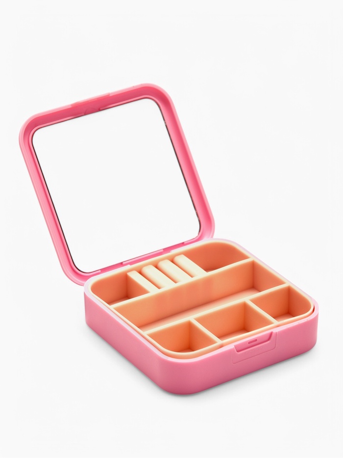 Эта компактная розовая шкатулка из мягкого силикона — идеальное решение для аккуратного хранения украшений и мелких аксессуаров. С квадратной формой и габаритами 9×9×2,5 см она легко разместится на любой поверхности, не занимая много места, при этом обеспечивая надёжную защиту содержимого.