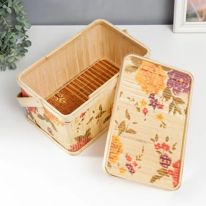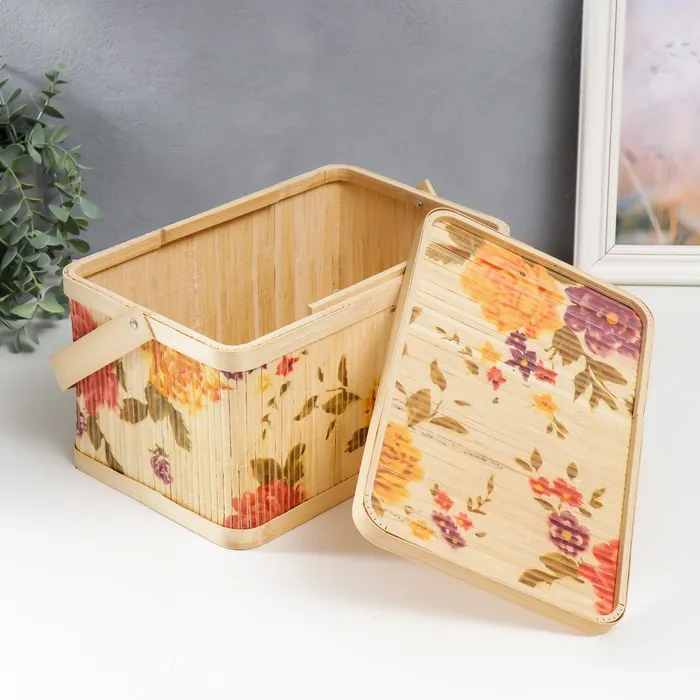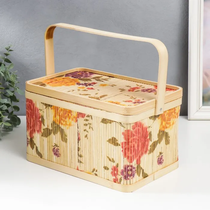 Шкатулка бамбук "Сад с пионами" прямоугольная, с ручками 16х18х28 см — Характеристики