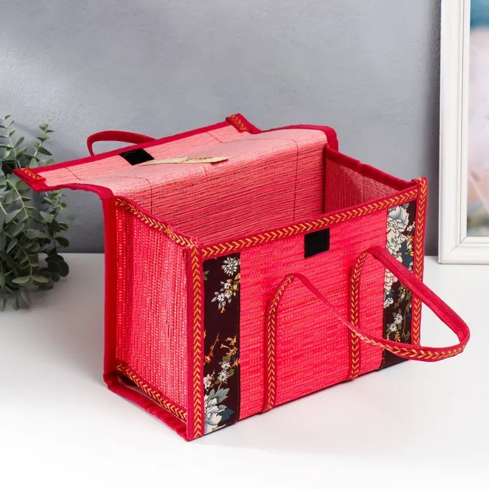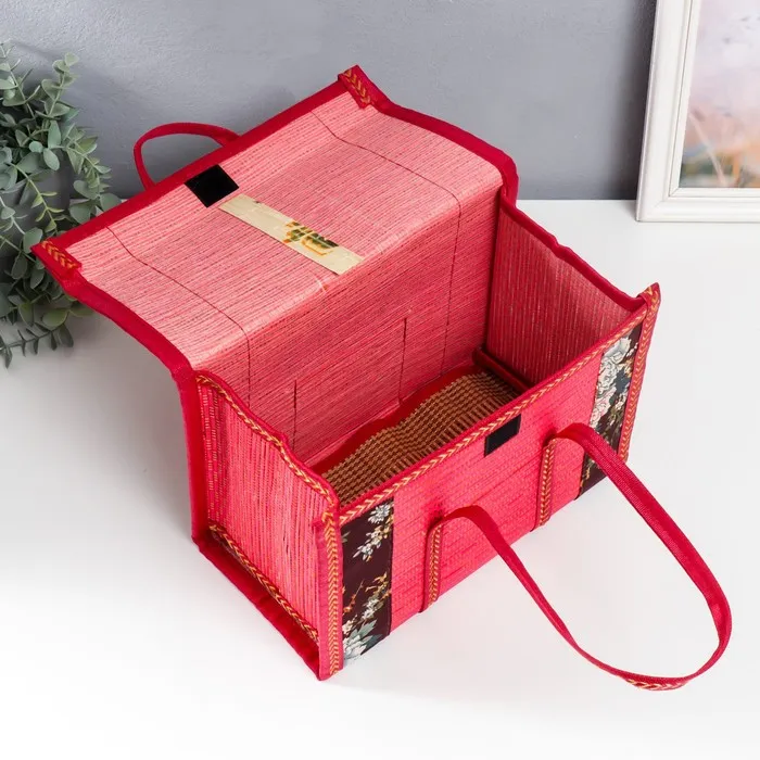 Шкатулка бамбук "Цветы на чёрном" красная, с ручками 20х15х30 см — Характеристики
