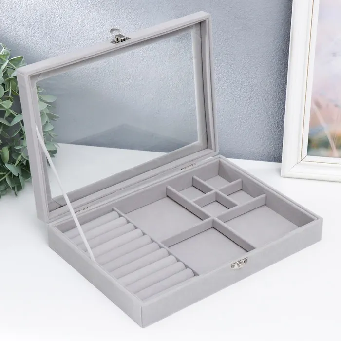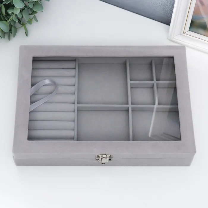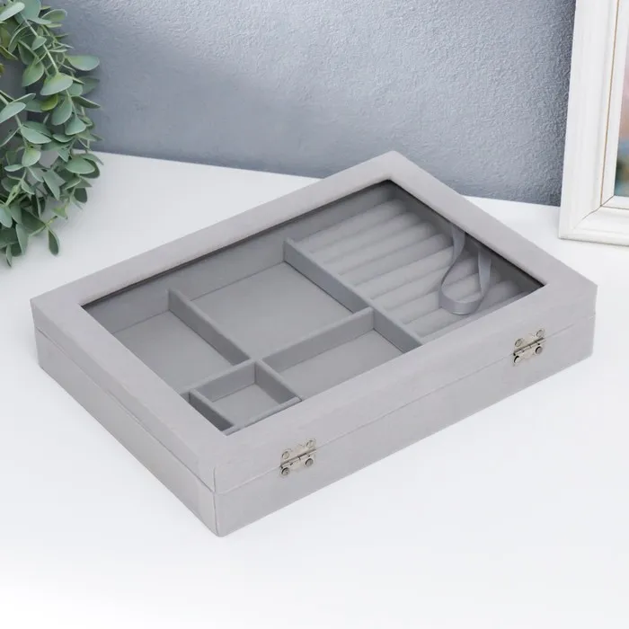 Шкатулка бархат для украшений (колец, браслетов и серёг) "Серый туман" 5х20х28 см — Характеристики