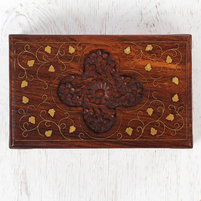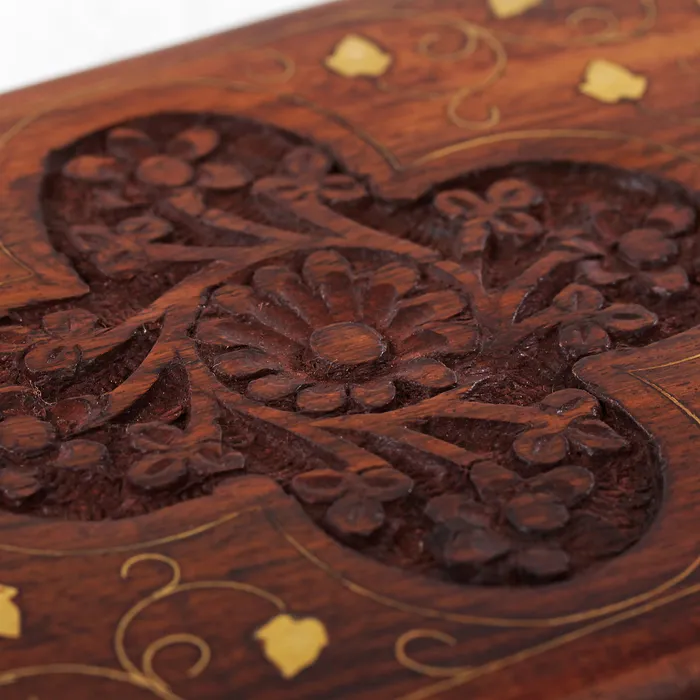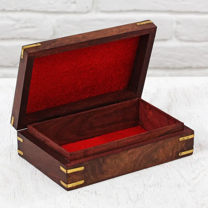 Изготовленная из ценной древесины шишам и дополненная элементами из латуни, шкатулка сочетает в себе природную красоту и долговечность. Покрытие лаком не только защищает поверхность, но и подчеркивает естественную текстуру дерева, делая каждый экземпляр уникальным. Её компактные размеры (13×20×6 см) позволяют легко разместить её на столе, полке или в шкафу, сохраняя при этом удобство использования.