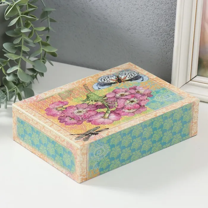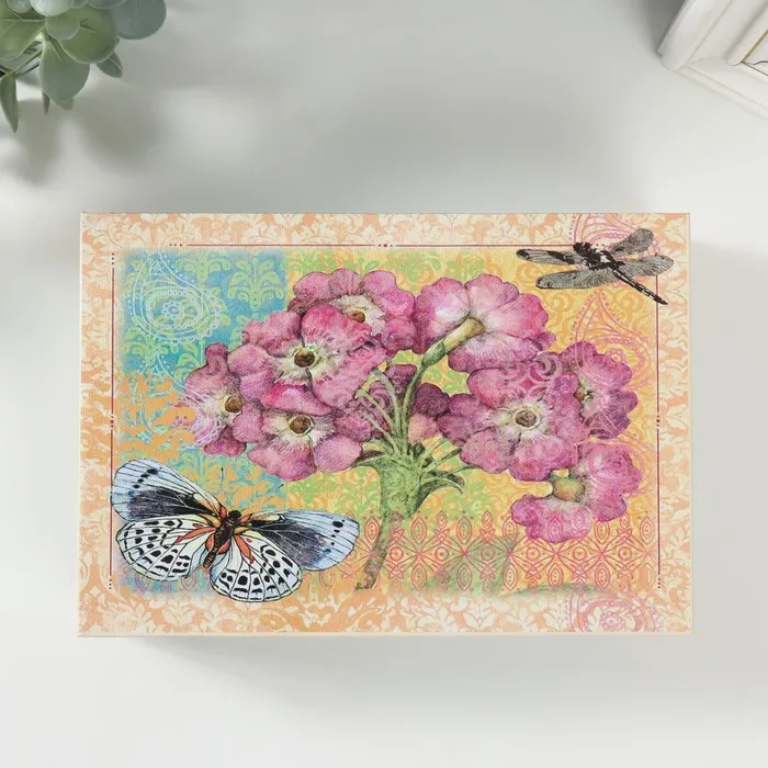 Шкатулка дерево "Гардения, бабочка и стрекоза" 19х13х5 см — Характеристики