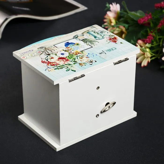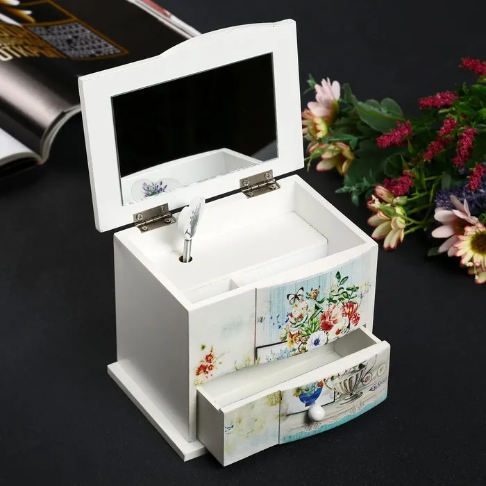 Шкатулка дерево комод 1 ящик музыкальная "Букет в античной вазе" 11х14,7х10,6 см — Характеристики