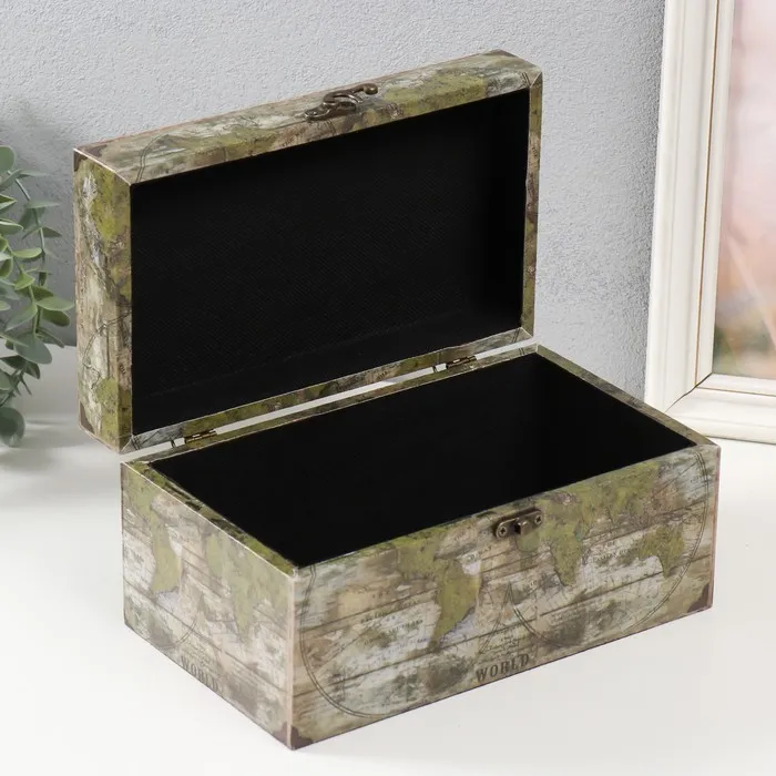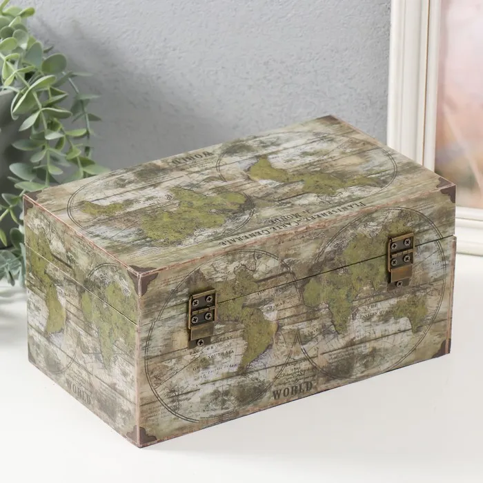 Шкатулка дерево кожзам "Карта" 24х14х12 см — Характеристики