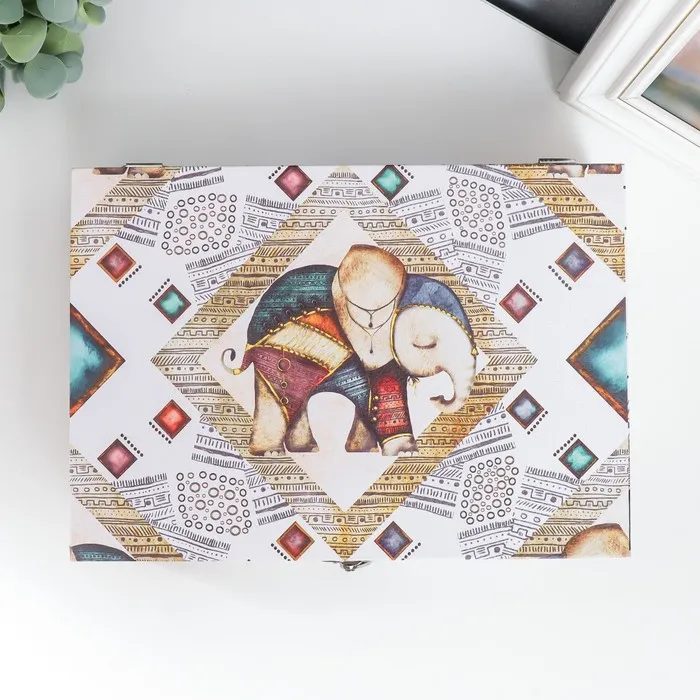 Шкатулка дерево "Маленький индийский слонёнок" кожзам 5,5х24х17 см — Характеристики