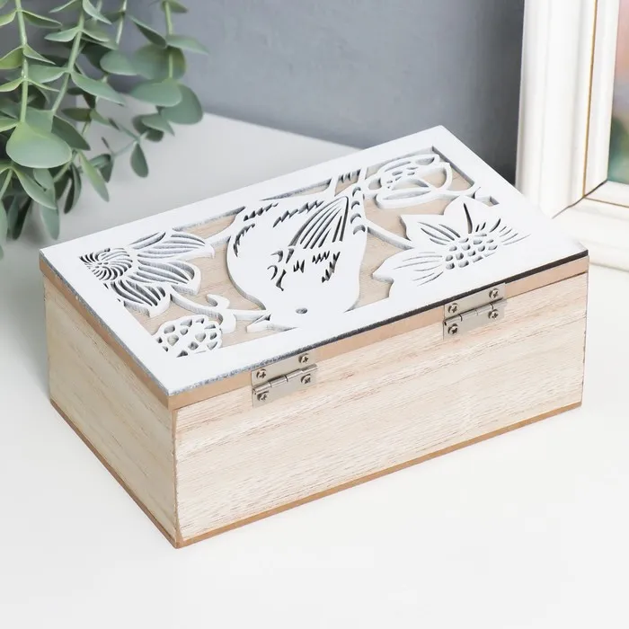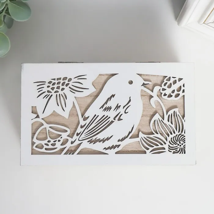 Шкатулка дерево "Птичка в цветах" бежево-белая 16х9,5х6,5 см — Характеристики