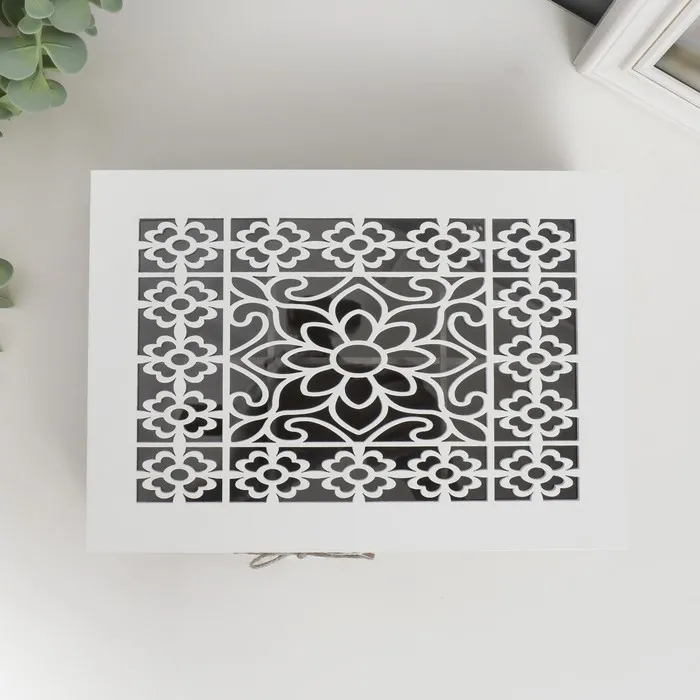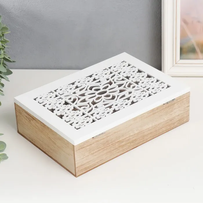 Шкатулка дерево с делениями "Белые ажурные цветы" 17х24х7 см — Характеристики