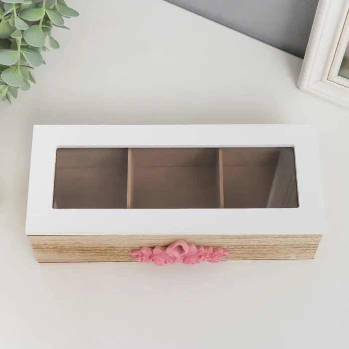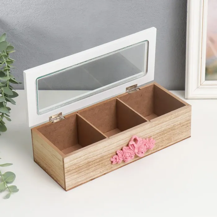Шкатулка дерево с делениями "Розовые розочки" бежевая 10х24х7 см — Характеристики
