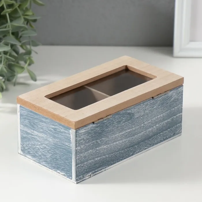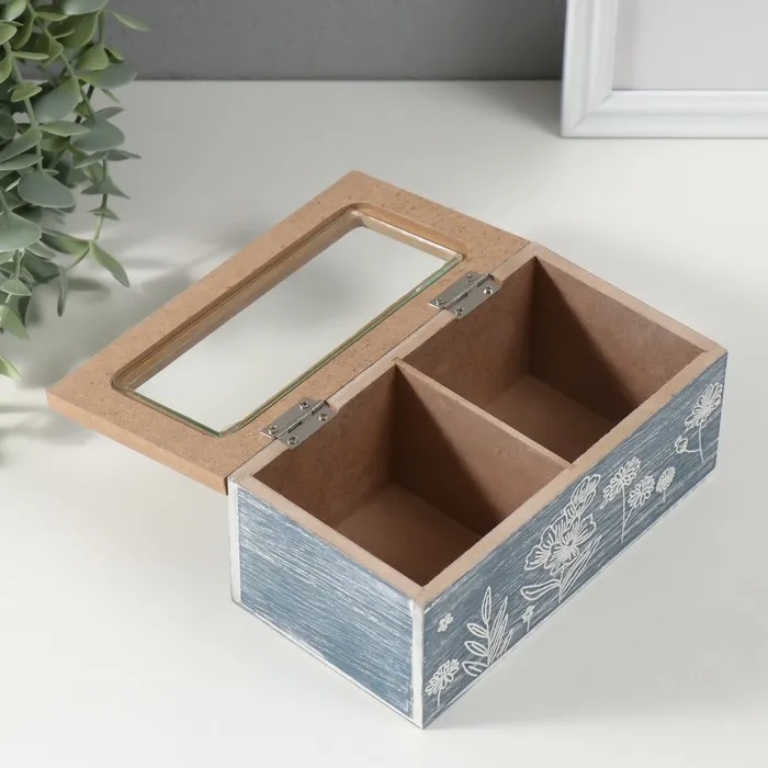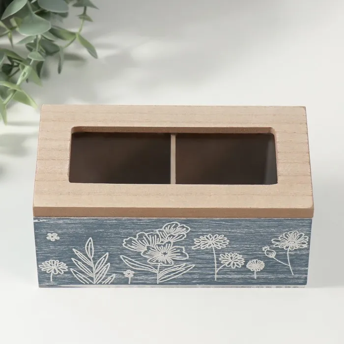 Шкатулка для чая 2 деления «Полевые растения», дерево, синяя, 8.8×16.2×7 см — Характеристики
