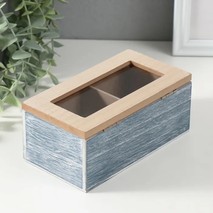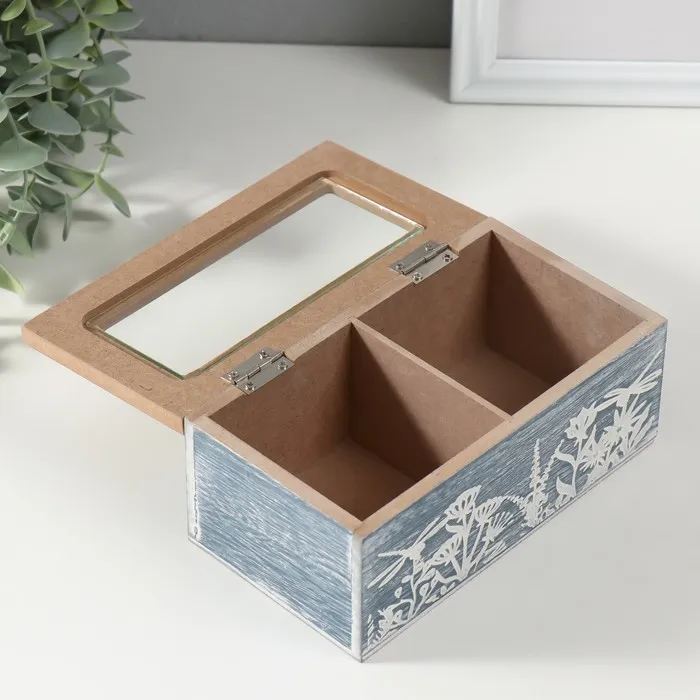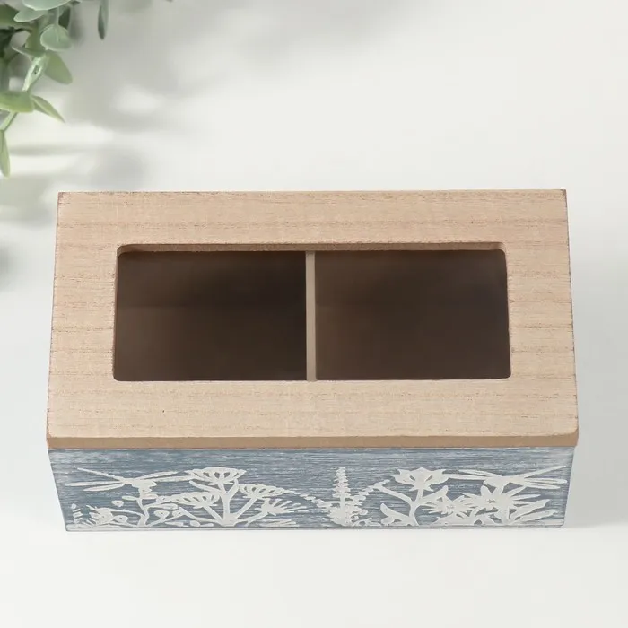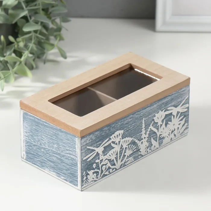 Шкатулка для чая 2 деления «Стрекозы и цветы», дерево, синяя, 8.8×16.2×7 см — Характеристики