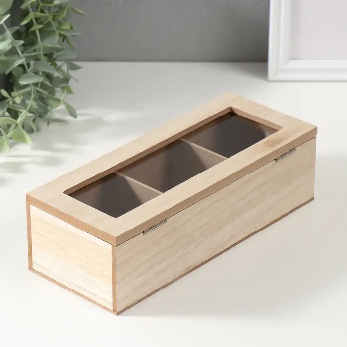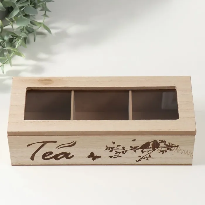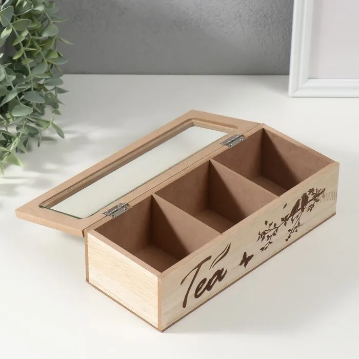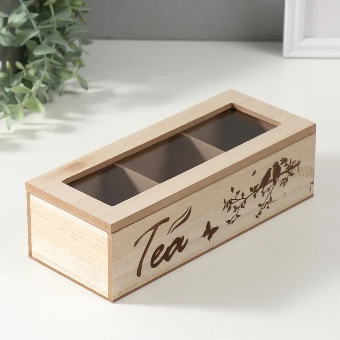 Шкатулка для чая 3 деления «Птицы на ветке», дерево, 9.7×24×7 см — Характеристики